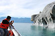 The excursion took us down to our destination in a matter of minutes, while we were informed about what we could see. Known as Sanctuary of Nature, they concentrate a set of islets called Marble Caves, Cathedral and Chapel. At this location, the lake waters have been breaking against the inside of these rock formations for thousands of years and they have polished the limestone until the marble seams were left in sight. The various hues of these walls made of calcium carbonate, quartz and limonite range from grayish blue to pink and pure white shades.
