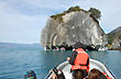 Once inside, several passengers landed on some small head lands to touch the rough surface of the rocks in the intricate galleries and get a different point of view of the external openings. The movement of the water and the color of the marble walls gave a turquoise tone to the inner light. It was incredible to see how it tinged us too.
