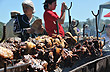 En otro momento decidimos partir de Puerto Montt y avanzar por la costa hacia el este hasta Caleta La Arena, para disfrutar del paisaje marítimo y los cambios que ofrece la marea. Cuando las aguas se retiran, aparecen los recolectores de frutos y algas recorriendo la orilla, y se dejan ver alerces petrificados enterrados en la arena.